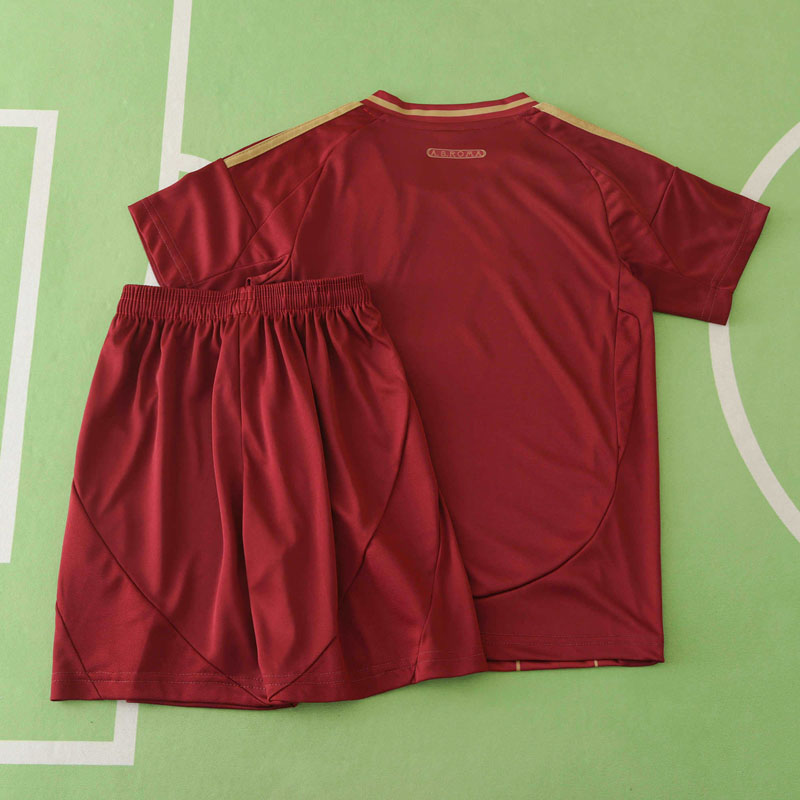 The AS Roma 24-25 home kit features a maroon base with gold details and pinstripes, inspired by the club’s historic Campo Testaccio.