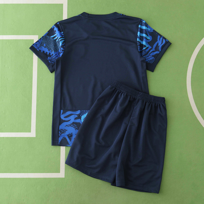 The third kit is predominantly blue with pink accents, has a vertical Nike Swoosh, and utilizes the club’s old crest.